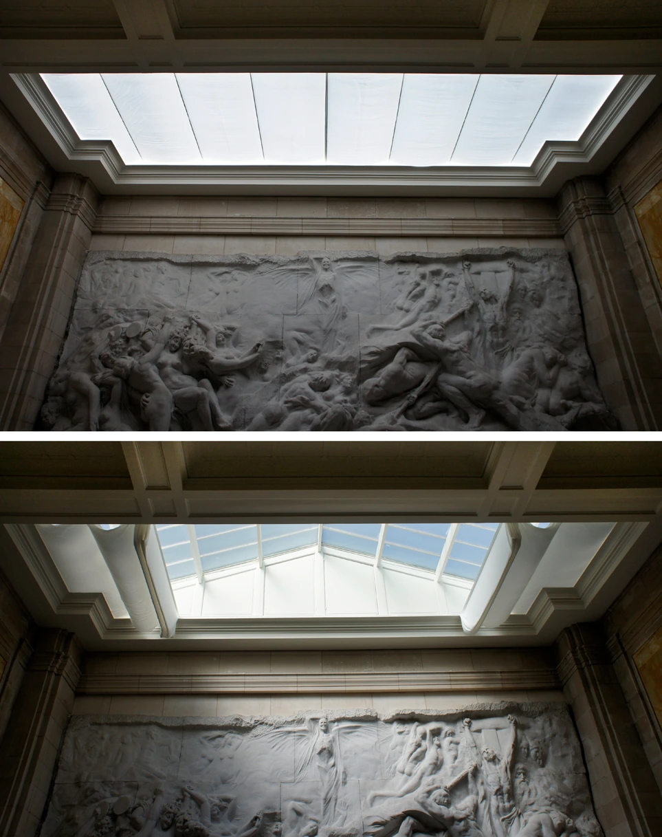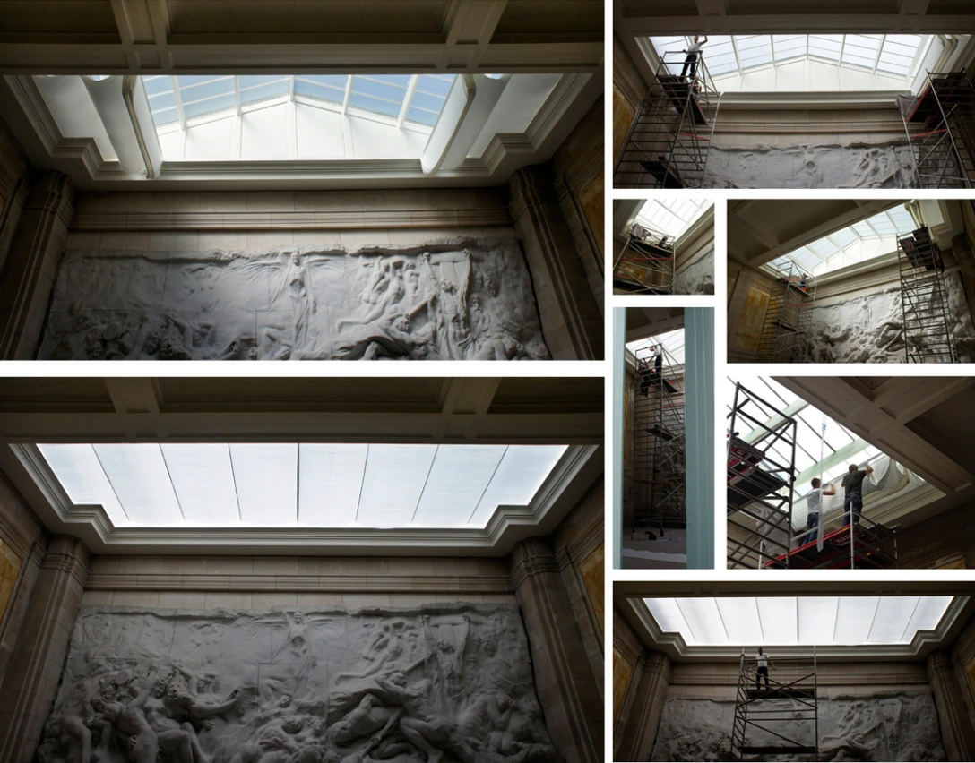 Op 3 juli 2015 werd het gerenoveerde reliëf uiteindelijk aan de voltallige pers voorgesteld — schitterend als nooit te voren !