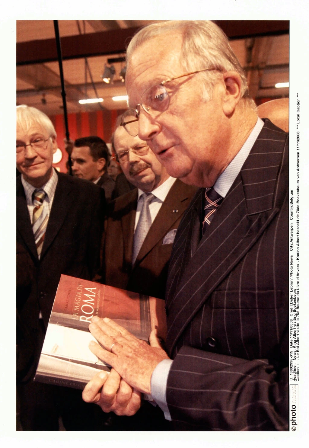De Belgische koning Albert heeft een bezoek gebracht aan de 70ste editie van de Boekenbeurs in Antwerpen. Op zich geen erg groot nieuws, ware het niet dat de vorst – die zoals gewoonlijk overal wel wat geschenkjes in ontvangst mag nemen – aan de stand van Roularta Books een exemplaar overhandigd kreeg van ‘De Magie van Rome’, het eerste boek van ons SPQR-clublid Carine Cuypers, tevens winnares van de Romulus 2005. De auteur mocht het boek persoonlijk overhandigen.